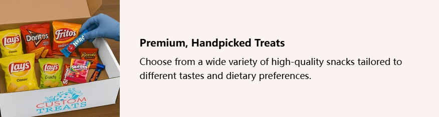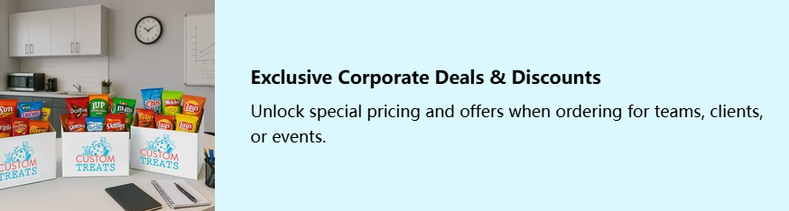 Start Shoppingy Custom Treats offers a wide selection of premium, handpicked snacks—perfect for corporate gifting, employee appreciation, events, and bulk orders.